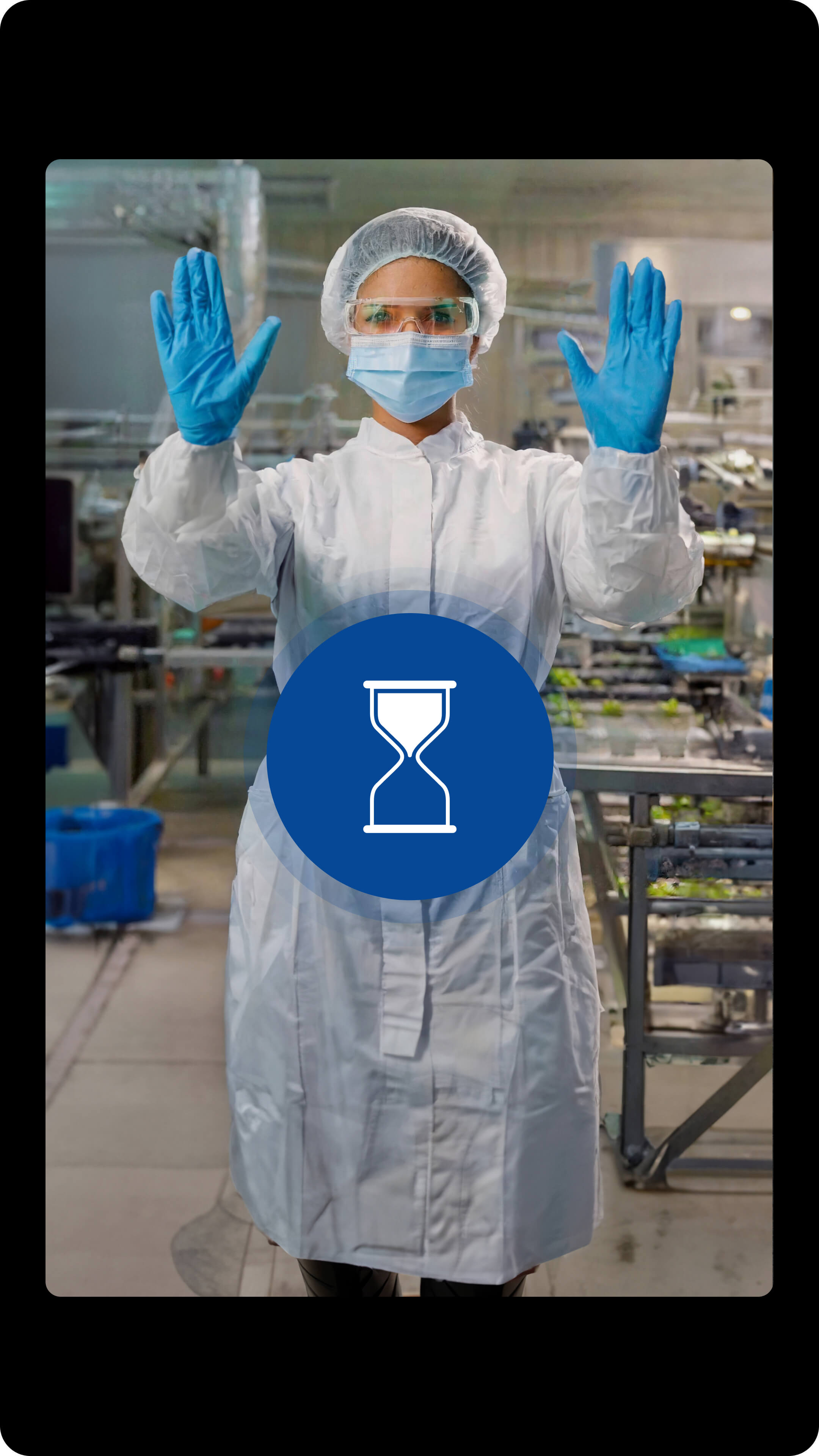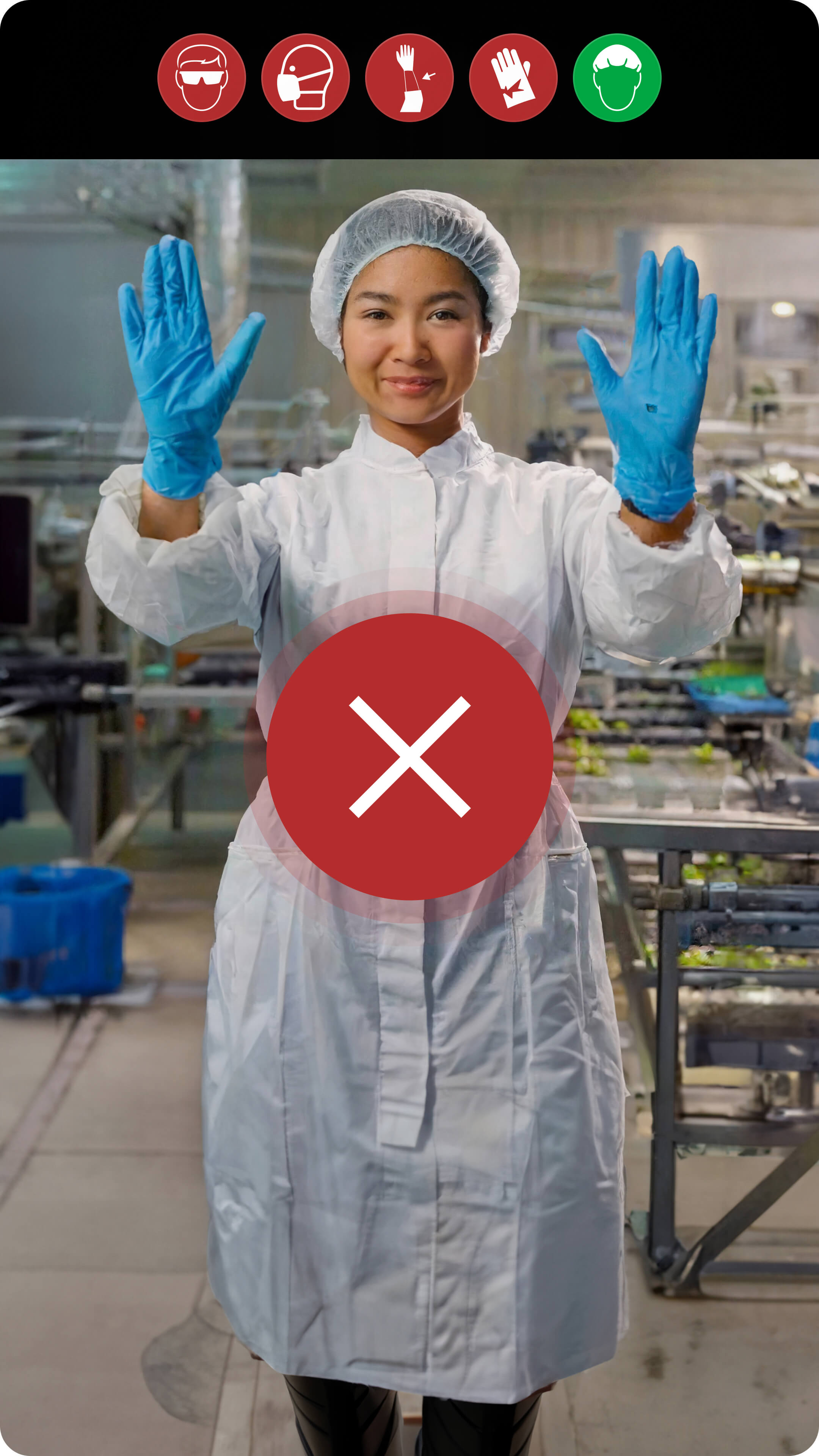 If the Mirror detects PPE discrepancies, a red cross symbol appears.